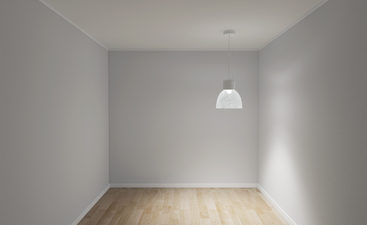 Luminaire body of aluminium in white (RAL 9016) textured enamel. Lined prismatic acrylic reflector. Supplied with 4,0 m white fabric cord 5x0,75 mm², 4,0 m wire suspension with friction locks for height adjustment and white, plastic ceiling cup.