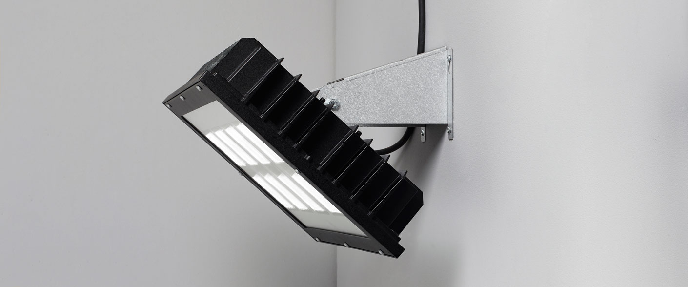 Luminaire body made of cast (RAL 9005) aluminium. Louvre frame made of coated sheet steel. Pressure balancing valve in side of luminaire body.
