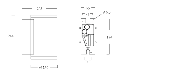 Body and wall bracket of die casted aluminium. Glass of PMMA.