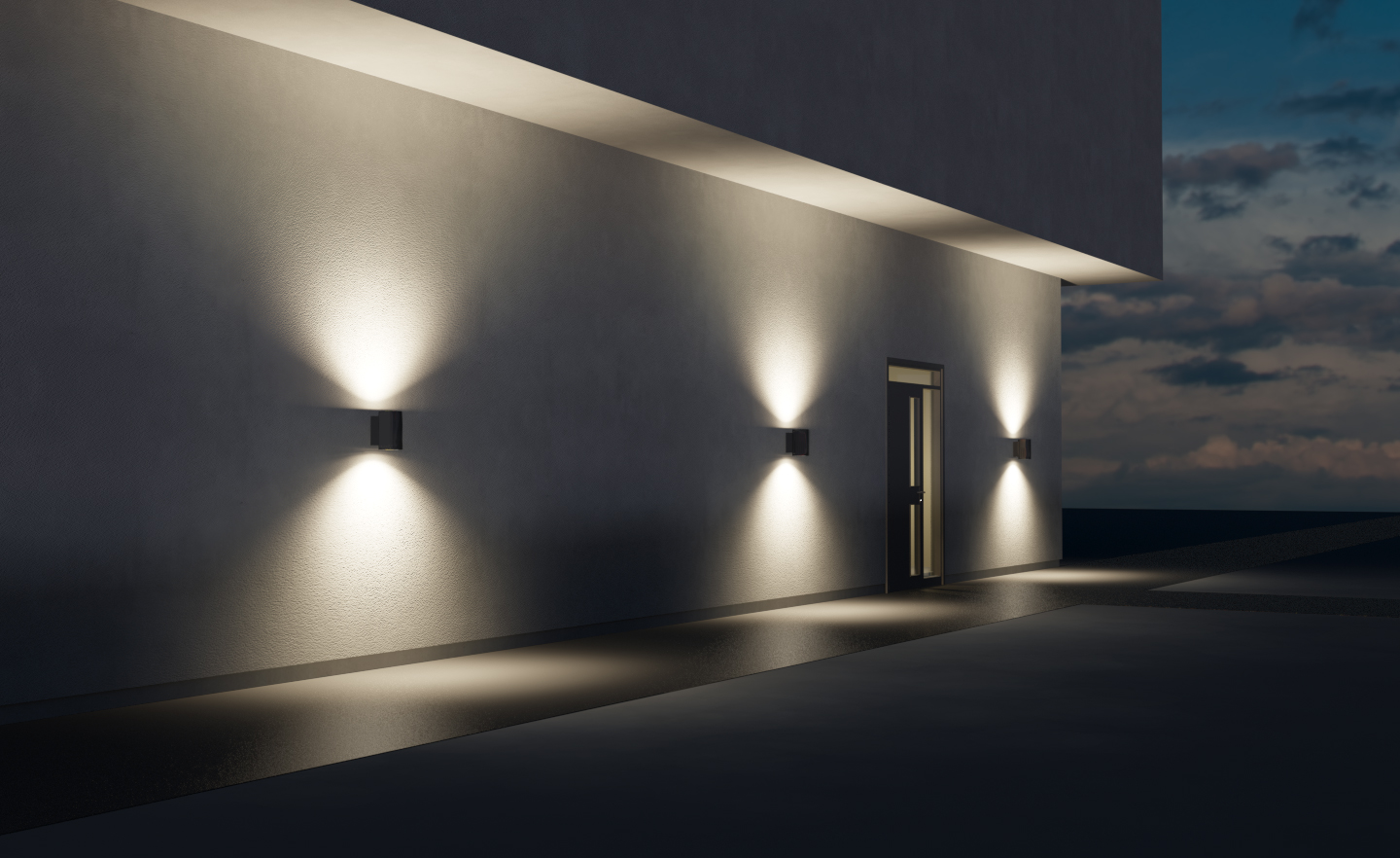 Terminal block 3x2.5 mm² or 5x2.5 mm² when dimming. Integrated driver in wall bracket for flexible installation. Onward connection possible.