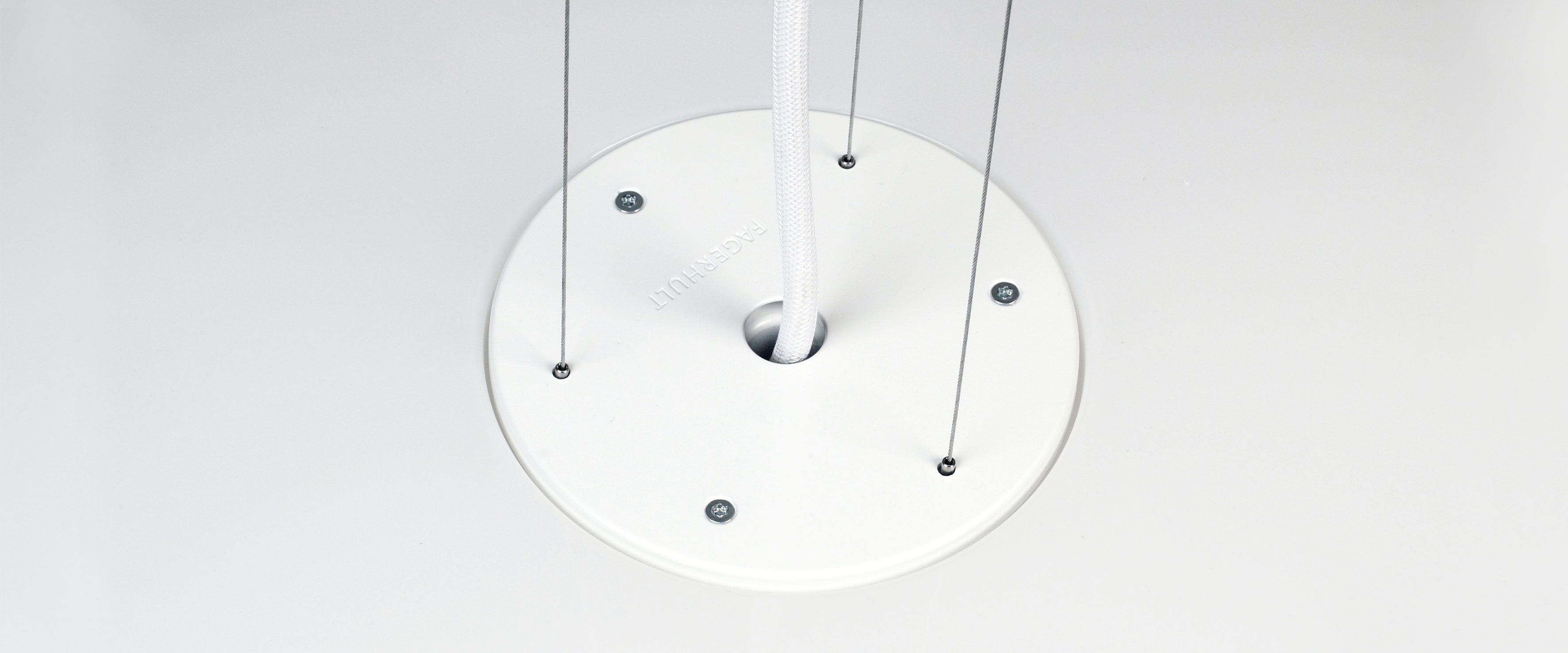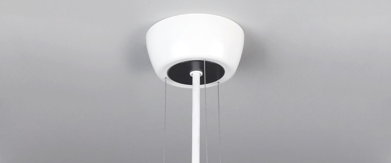 Snap-in terminal block 5x2.5 mm², 1-phase through-wiring possible. Wire length 2.5 m and a 2.5 m white fabric cord. Surface mounted cable possible. Height adjustment is done on the luminaire via a friction lock.
