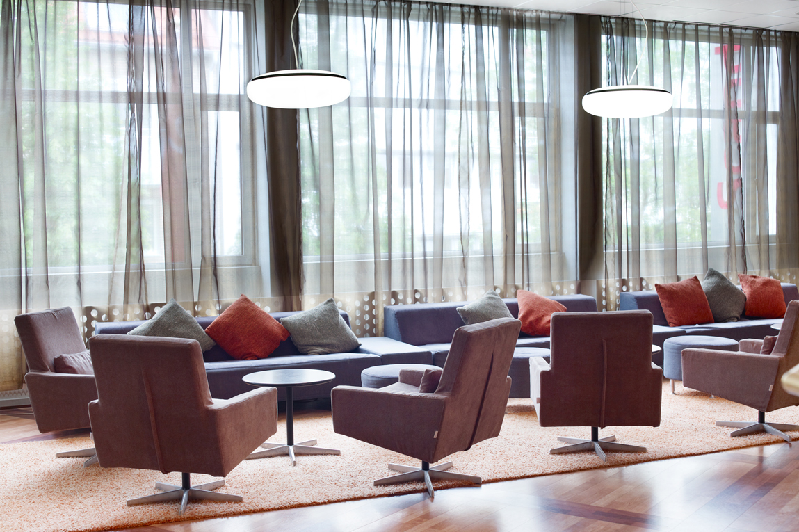 16117 Tibi 16117A round beam decorative luminaire in three sizes for entrances and stairwells, for example. Also available with Tunable White for dynamic lighting.