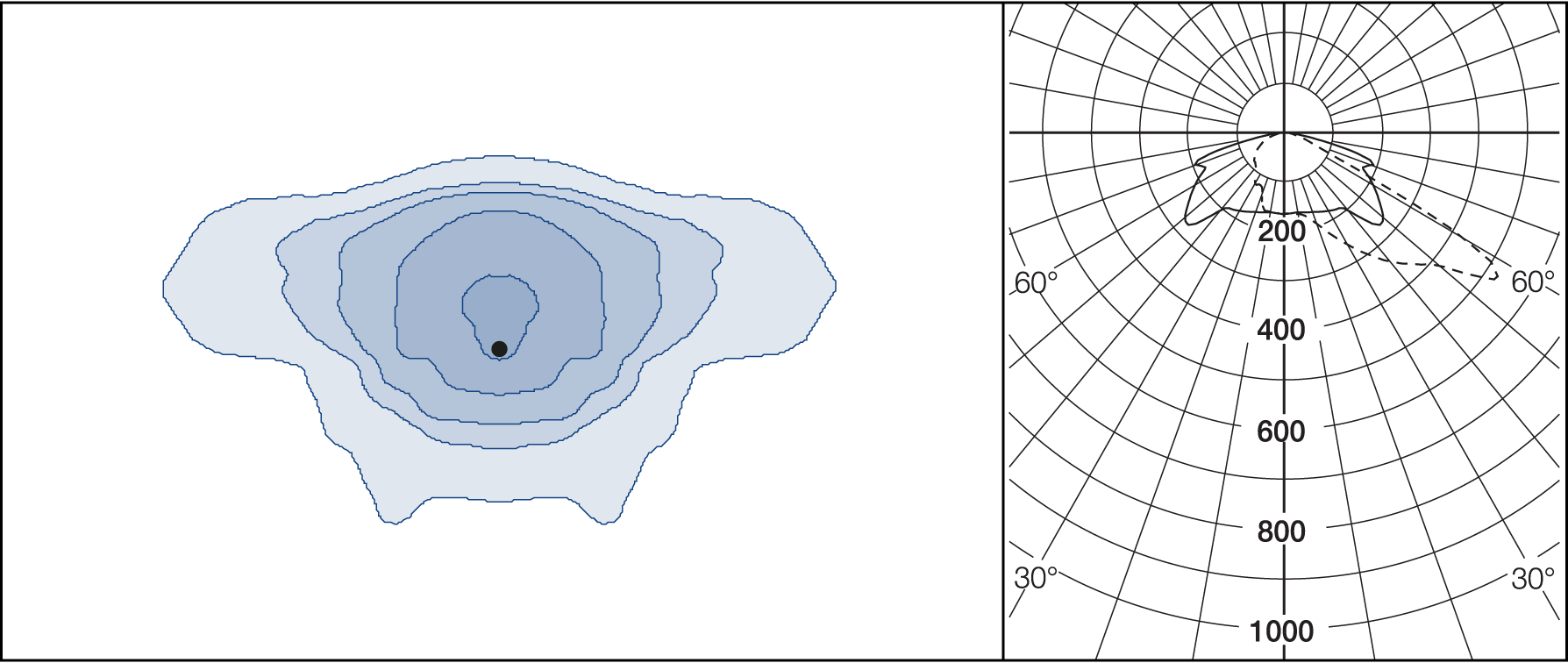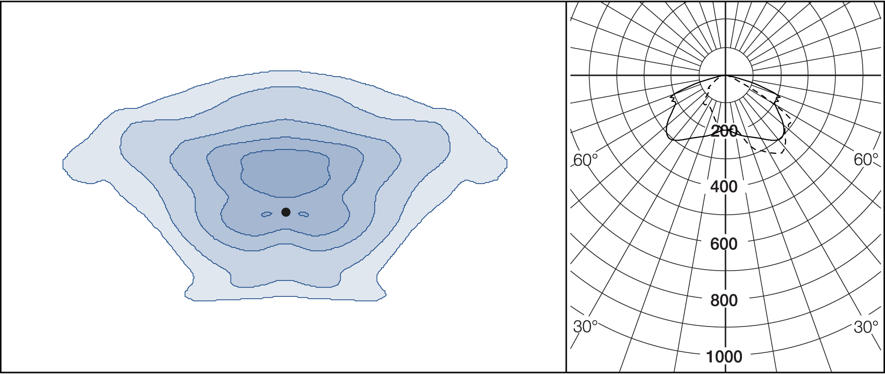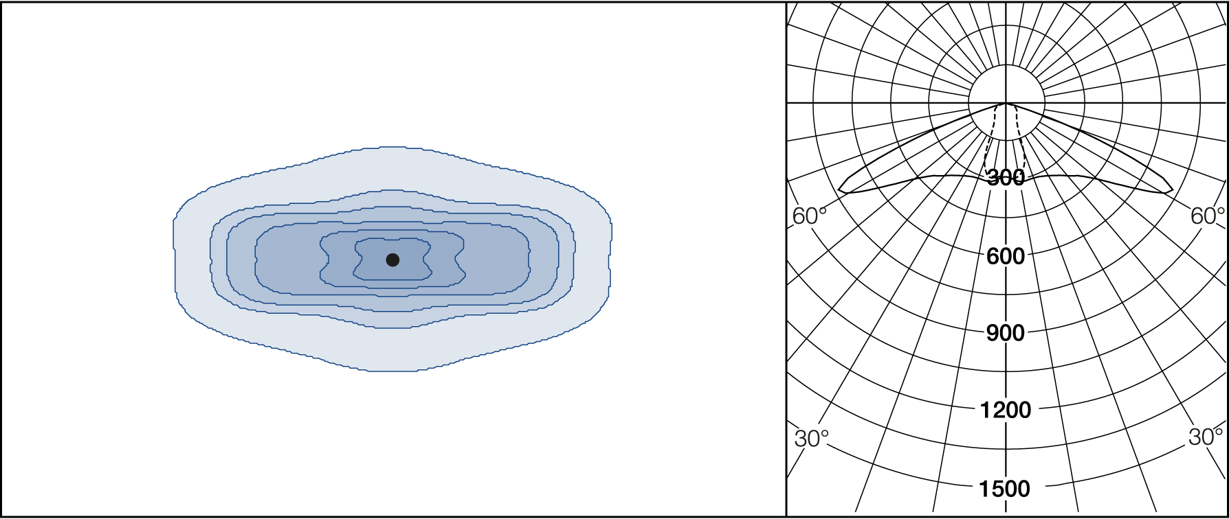 AGC-lenses (Advanced Glare Control). The E-lens are designed to focus on illuminance. L lenses are ideal if the luminance from the ground is the main priority. Plates for backlight screening are available on request.