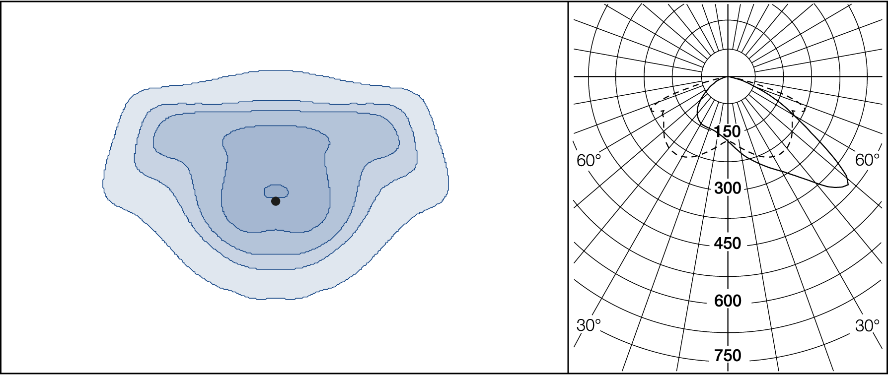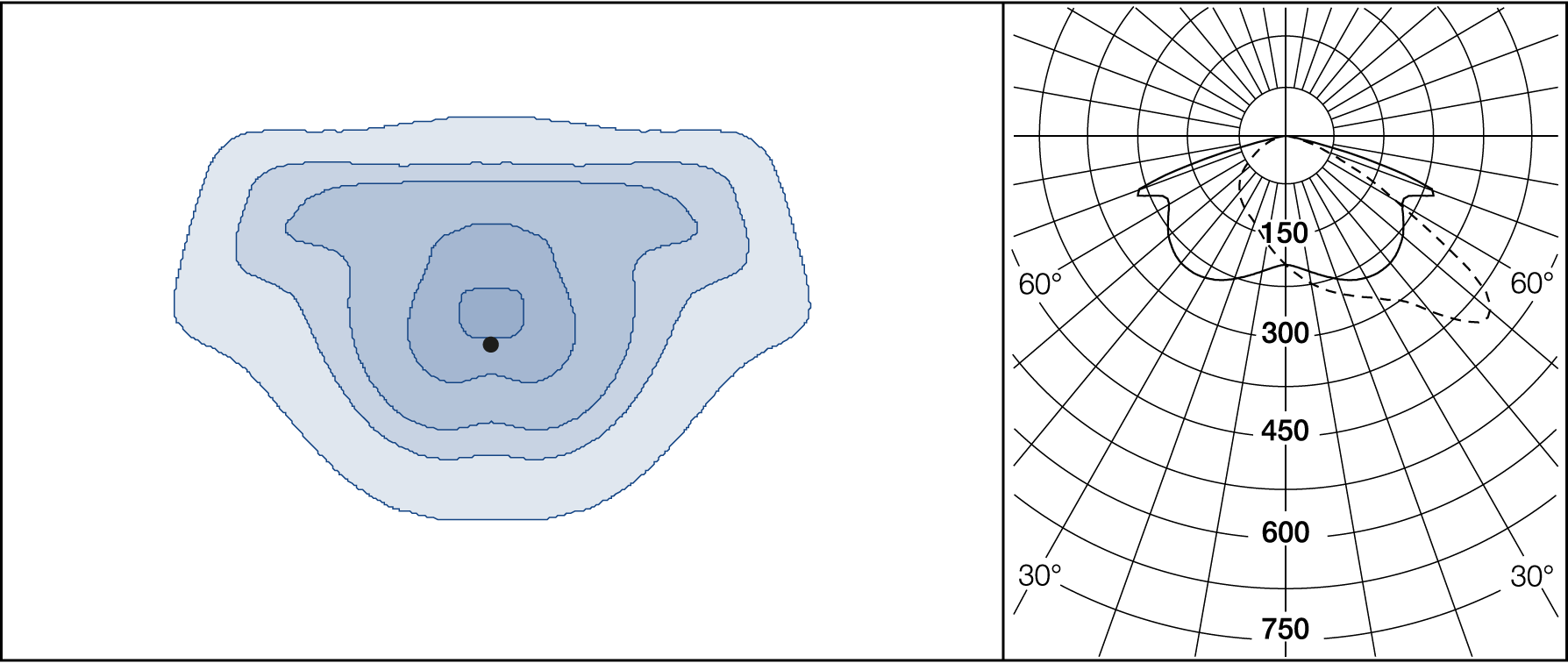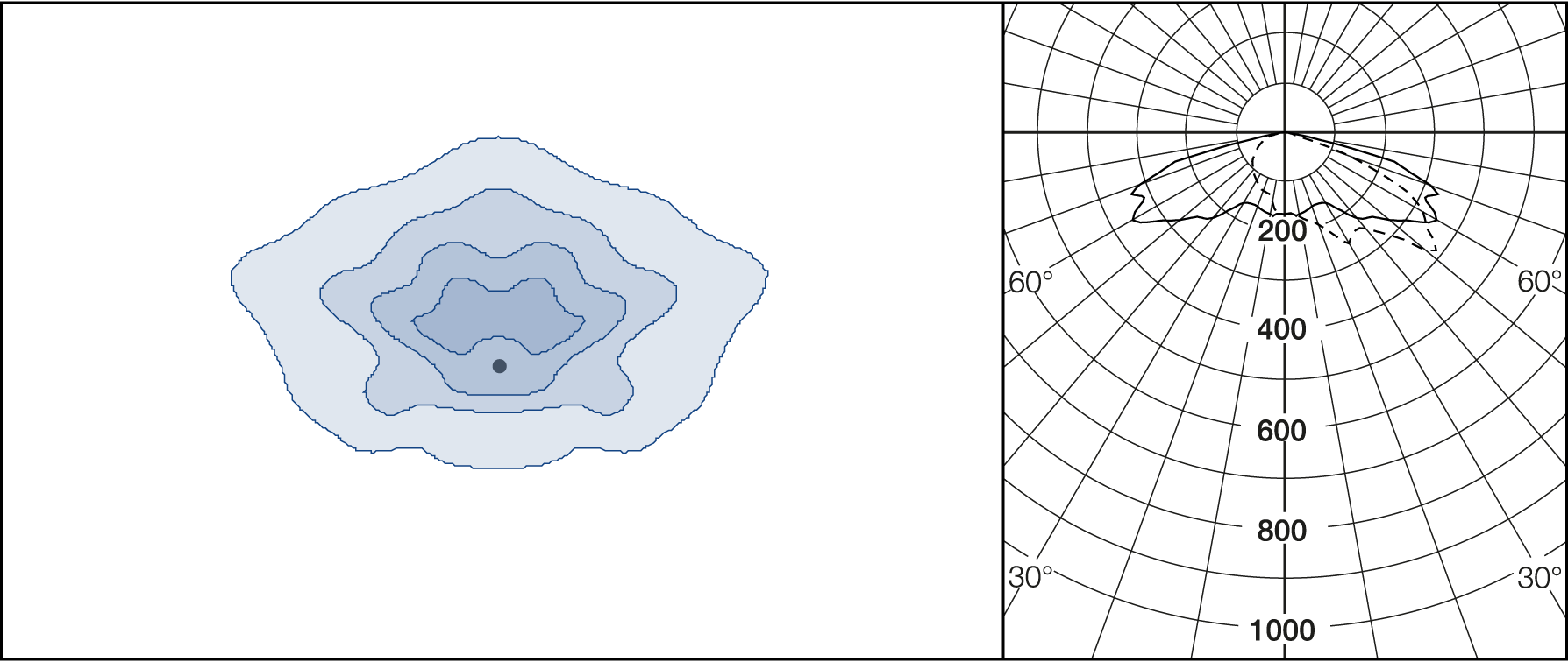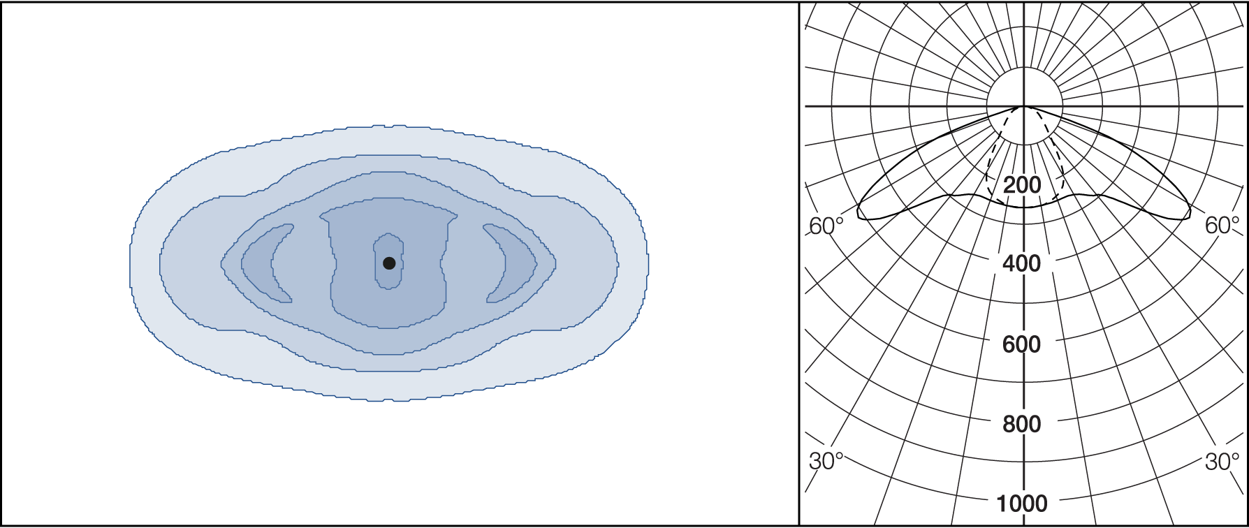 AGC-lenses (Advanced Glare Control). The E-lens are designed to focus on illuminance. L lenses are ideal if the luminance from the ground is the main priority. Plates for backlight screening are available on request.