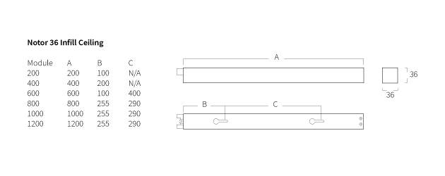 Spacers 1000 mm, ceiling, Beta Opti Nano, continuous.