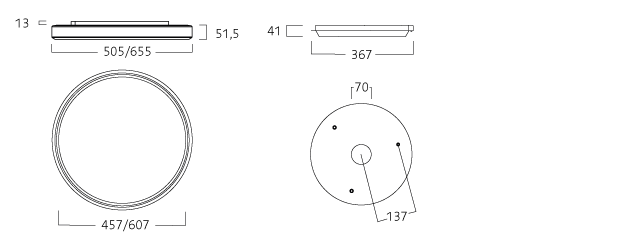 Metal housing with white (RAL 9016) or black (RAL 9005) structured finish.