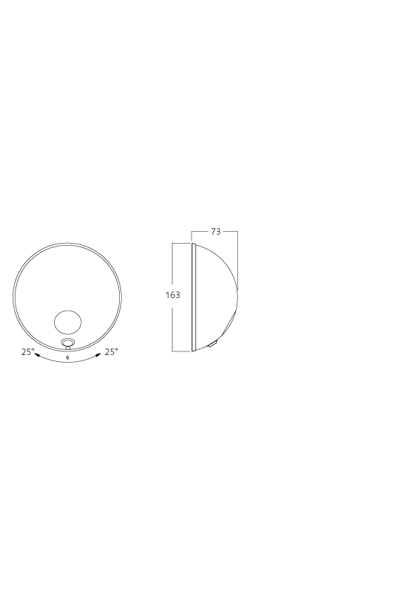 Enamelled body in steel. Casing of 1 mm white enamelled (RAL9016) aluminium. Pushbutton for off/on and dimming, safe against damage.