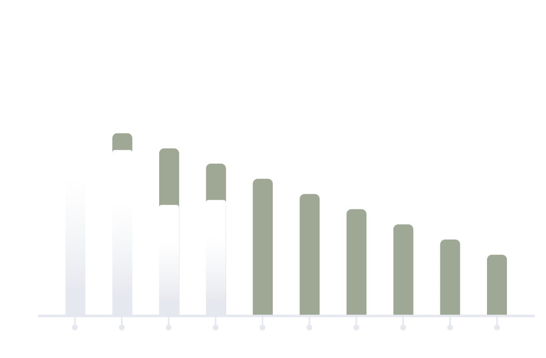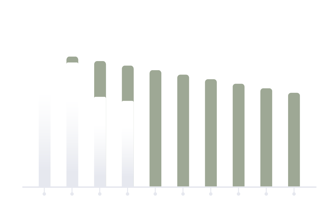 In the graphs, the green bars represent a linear reduction in emissions from our baseline year 2021 to 2030, which is the reduction rate required for us to meet our targets during the period. The white bars show the actual outcome for each year.