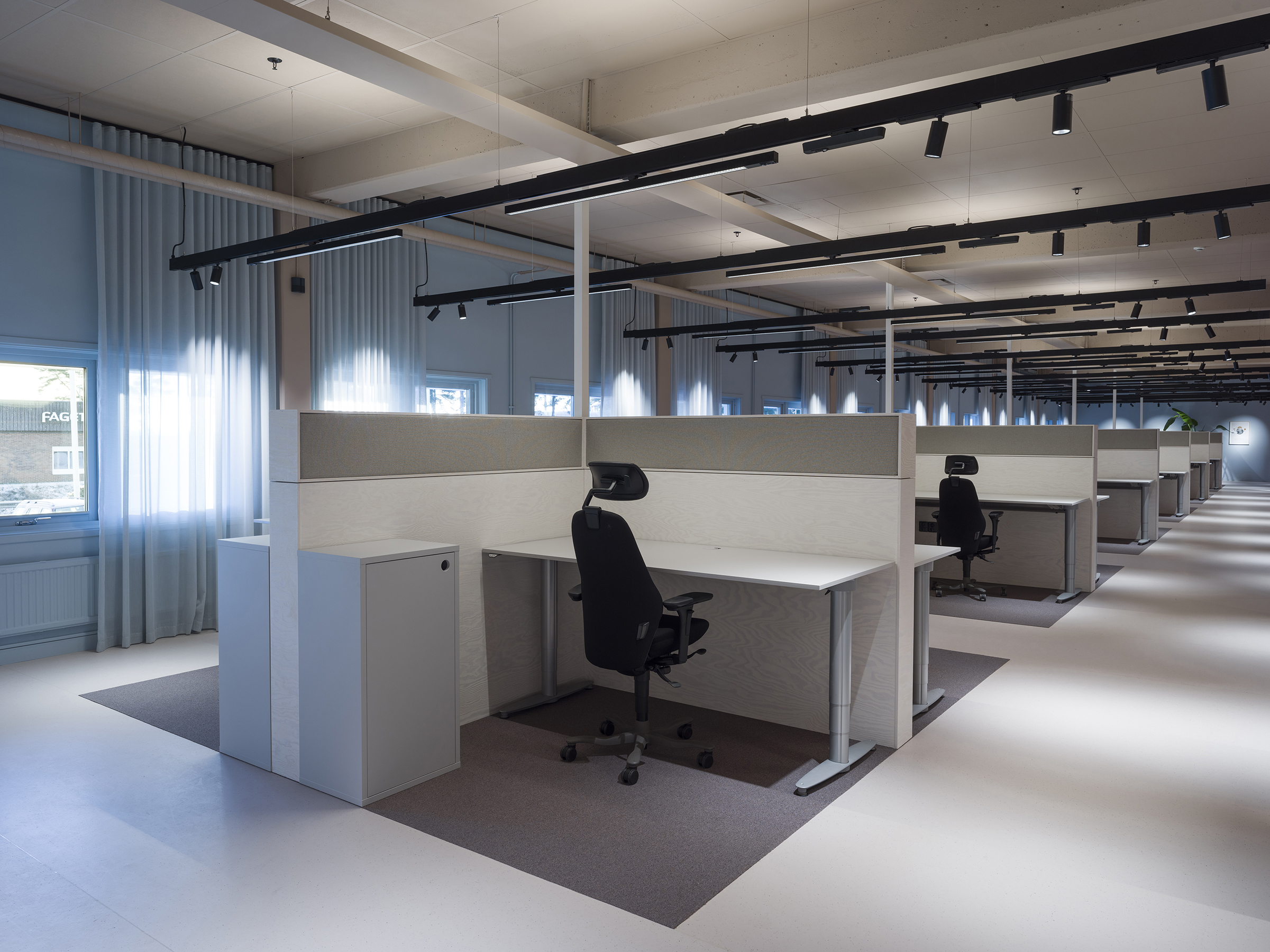 „Die Doppelschiene bietet ganz neue Freiheiten für das Beleuchtungsdesign und ermöglicht, das Licht vollständig an die Wünsche und Bedürfnisse der Mieter anzupassen. Indirektes und direktes Licht lassen sich ganz einfach kombinieren. 300 Lux kann nur mit nach oben gerichtetem Licht erreicht werden. Völlig unabhängig von den Leuchten bietet die Schiene die richtige Grundbeleuchtung und mehrere Lösungen für die Steuerung. Es kann beispielsweise allgemeines nach oben gerichtetes Licht geben, das eingeschaltet wird, wenn jemand im Raum ist, während sich das direkte Licht an einem Arbeitsplatz nur einschaltet, wenn jemand dort sitzt“, erklärt Cecilia Niva.