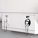Electrical cables and gas pipes can be connected in three ways; from the side via the panel’s end-cap, via holes in the bottom profile’s rear and from above via the supply duct. All electrical and gas outlet sockets are internally connected and routed to terminal blocks at the connection end.