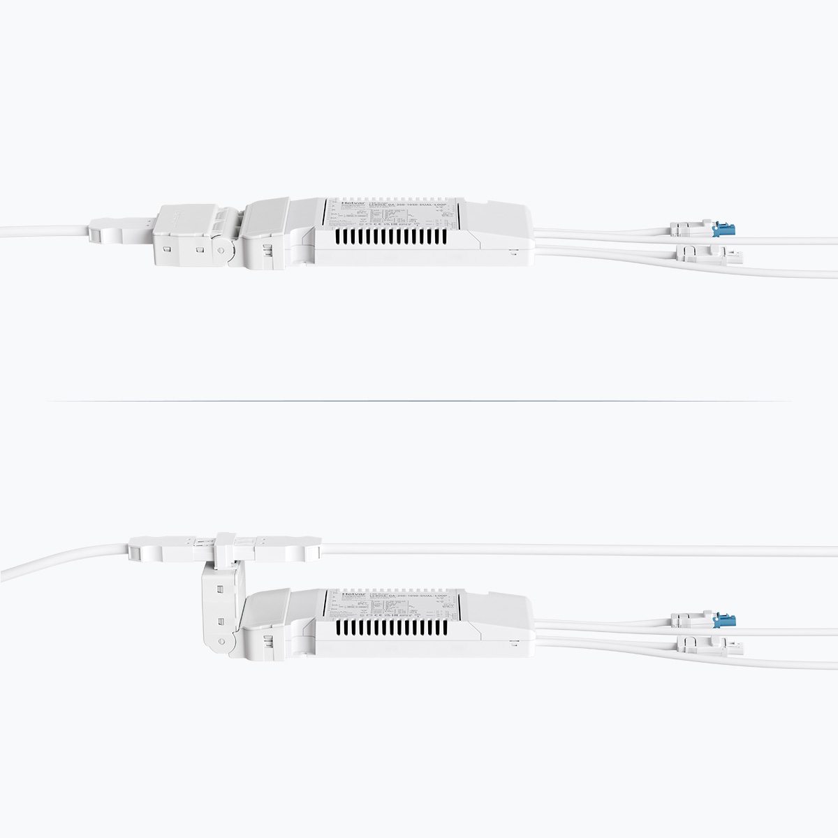 The Twin Dual Driver is equipped with a quick connection system that allows for angled connections on the primary side. This simplifies installation in low or narrow ceiling spaces.