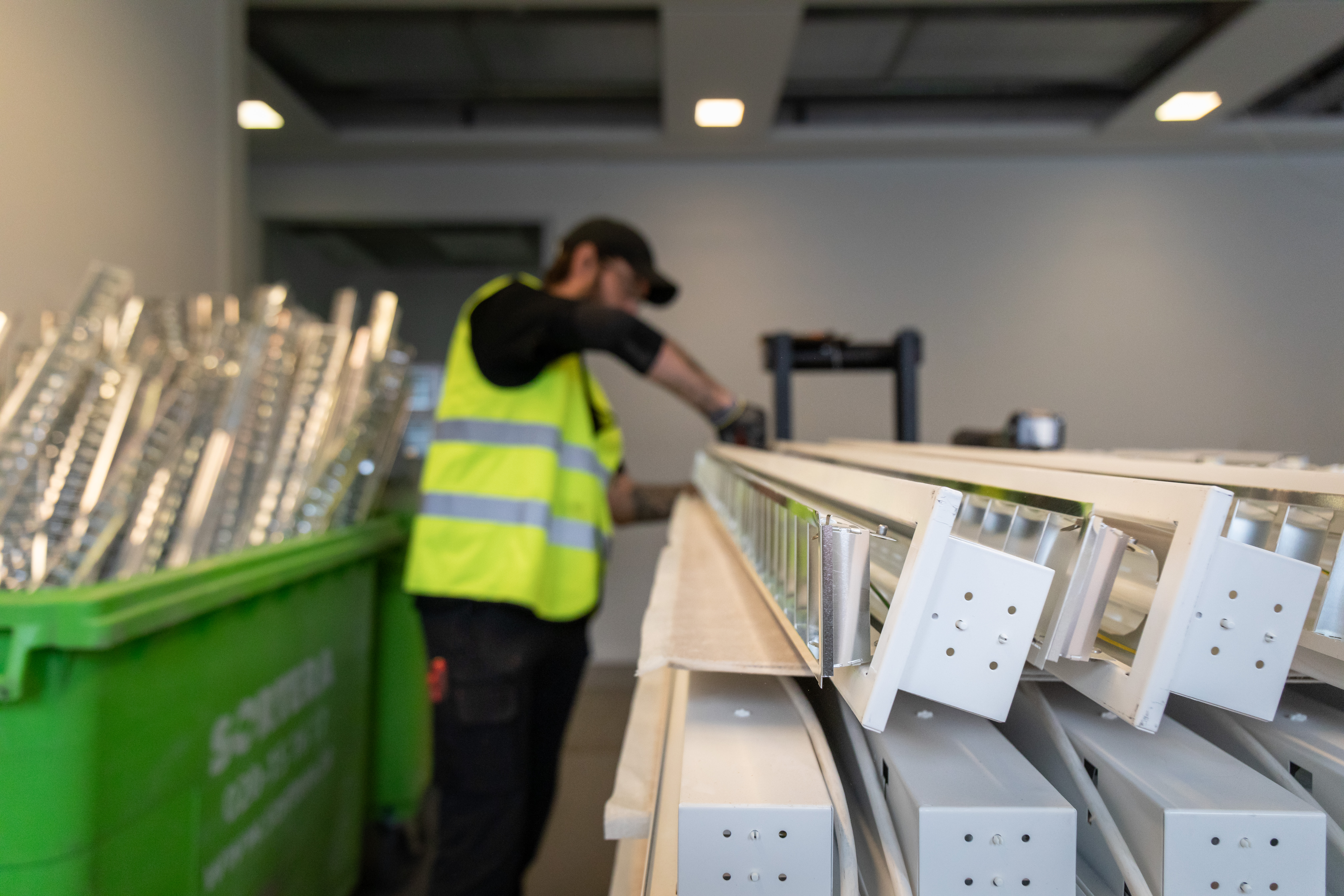 A full-scale production line was created at Greenhouse where Fagerhult planned and organised all the set-up in close collaboration with the on-site electricians for an efficient workflow. We considered everything from easy transportation of the luminaries inside the building to management of functional tests and recycling by the knowledgeable assemblers.