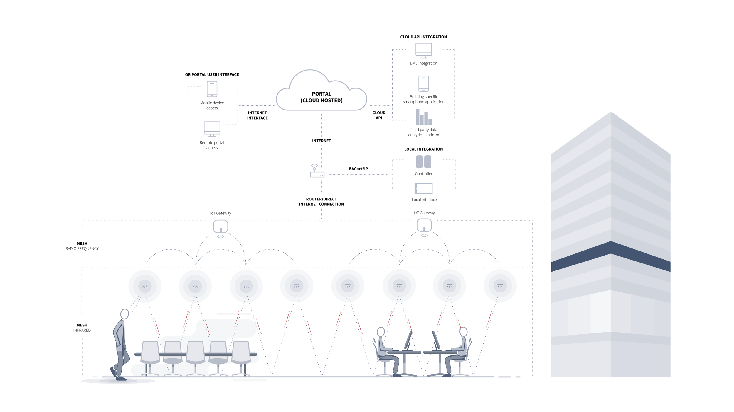 Een comfortabele omgeving om in te werken of te studeren doet iets met onze creativiteit en productiviteit. Bij het integreren van verschillende technologieën speelt informatie de hoofdrol. Data wordt verzameld door sensoren die in verbinding staan met elkaar en met het centrale systeem voor onder andere gebouwbeheer.