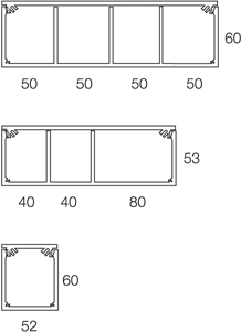 Matningskanal 17445 har tre separata utrymmen som är åtskilda med fasta väggar. Matningskanal 17446 och 17448 har två separata utrymmen som är åtskilda med fast vägg. För 17446 kan respektive utrymme delas med monterbar mellanvägg till tre alternativt fyra separata utrymmen. För 17448 kan ett av utrymmena delas med monterbar mellanvägg till tre separata utrymmen. Matningskanal 17449 består av enbart en kanal. Täcklocket är försett med kabel för jordförbindning mellan lock och profilbotten. Till matningkanalerna finns tillbehör exempelvis gavel, passbit och hörn 90°.