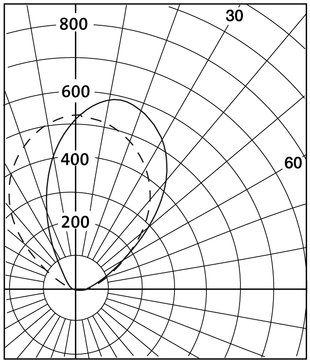 Asymmetrisk reflektor av aluminium med mycket goda reflektionsegenskaper (>92 %).